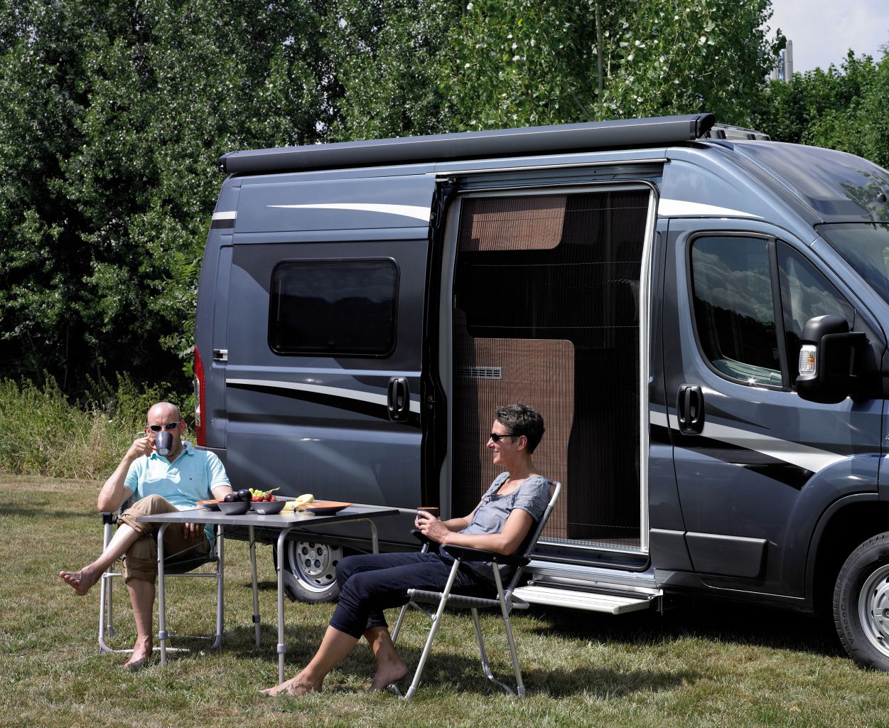 Einfach plissierter hochwertiger Insektenschutz für Schiebetüren des Fiat Ducato H2 X250 / X290 und baugleicher Fahrzeuge. Füllt den Türausschnitt komplett aus.