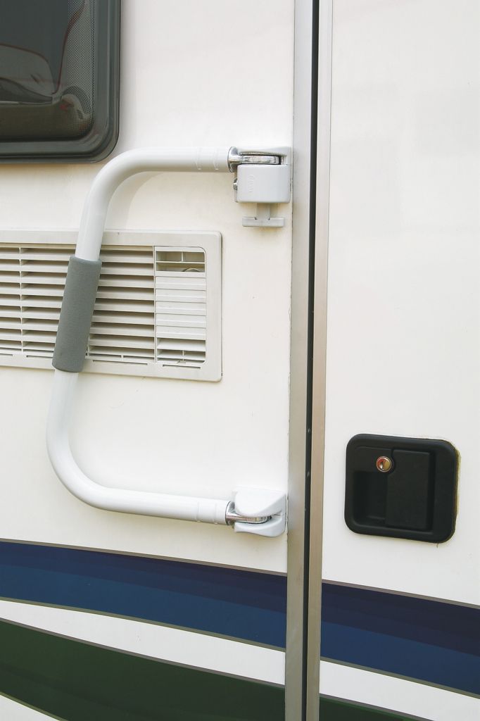 Optimal für sicheres Ein- und Aussteigen aus dem Fahrzeug. Aus solidem, eloxiertem Aluminium ø 30 mm, Stärke 2 mm. Über die Tür geklappt schützt er vor Einbruch, indem er mit dem mitgelieferten Schloss verriegelt wird. Verhindert die zufällige Öffnung der Tür während der Fahrt. Passt für alle Türen mit rechter und linker Öffnungsvorrichtung.