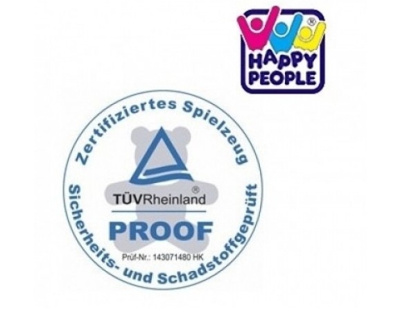Die Grundlage zur Vergabe des Prüfzeichens ist die Erfüllung der Anforderungen des TÜV Rheinland Proof Kriterienkataloges. Die Artikel von HAPPY PEOPLE gehen über die grundsätzlichen Sicherheitsanforderungen der EG-Spielzeugrichtlinie 88/378/EWG hinaus. Weiterhin werden bei der Prüfung Mindestanforderungen an Funktionalität und Verarbeitungsqualität berücksichtigt. Zudem prüft der TÜV durch regelmäßige Marktüberwachung, ob die Berechtigung zur Führung des Prüfzeichens bei den zertifizierten Produkten weiterhin gegeben ist.