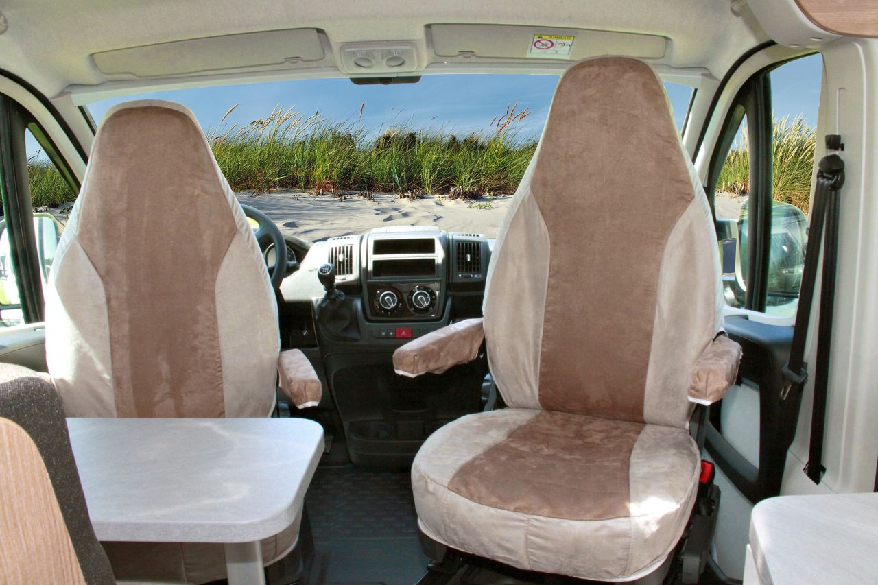 Passt für Fiat Ducato ab Baujahr 07/2006 mit ISRI-Sitzen, auch bei montierten Armlehnen. Der 2-teilige Bezug schützt die Originalpolster vor Verschmutzung und Abnutzung, sein Obermaterial besteht aus schmutz- und fleckenabweisendem Alcatraz Velours-Lederimitat (100 % PES mit FC-Ausrüstung), das bis 30 °C waschbar ist. Die Armlehnen-Schonbezüge sind separat zu bestellen!