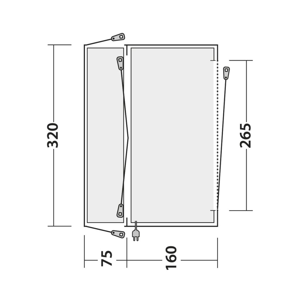 Vorderwand: kann komplett geöffnet werden. Mit Moskitonetzfenster und getöntem Folienfenster.