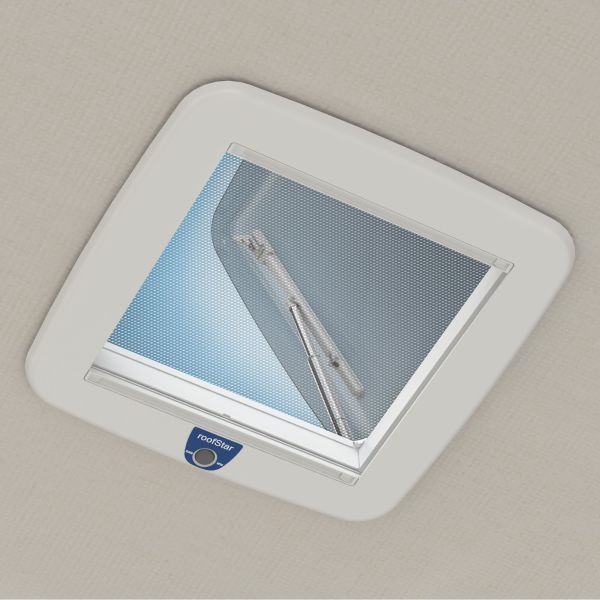 Besonders stabil: Beide Ausführungen bestehen aus bewährtem, UV-beständigem ASA- und PMMA-Material. Mitgedacht: In der motorisierten Version ist ein zusätzlicher, permanent wirkender Fliegenschutz integriert! Effektive Verdunkelung: Beide roofSTAR Modelle haben ein Rollo-System integriert, das eine effektive Verdunkelung bietet und eine einfache Handhabung garantiert.