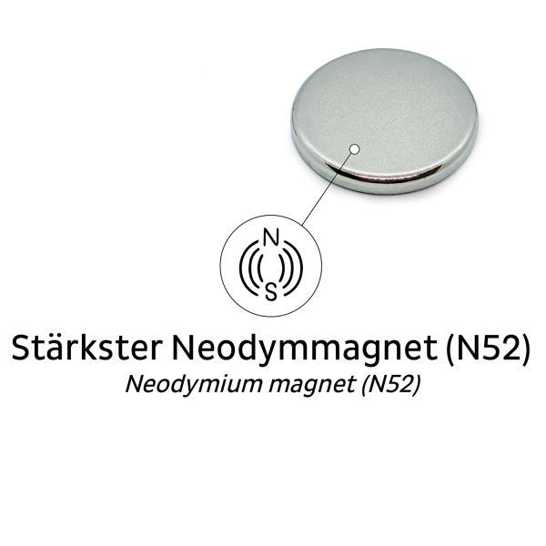 - sehr starke Haltekraft/Zugkraft, stärkster Neodymmagnet (N52)